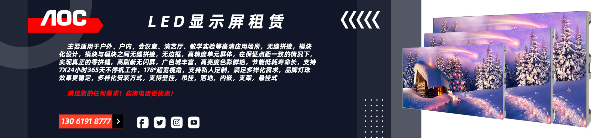AOC P3 室內(nèi)全彩led顯示屏 無(wú)縫拼接 舞臺(tái) 會(huì)議室 展廳 商場(chǎng) 廣場(chǎng) 戶(hù)外廣告電子屏 商用辦公大屏幕